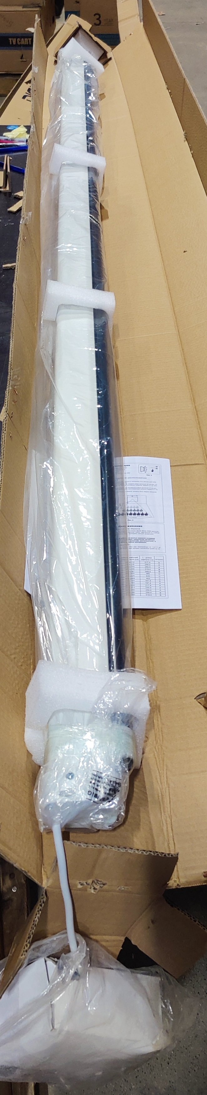 - Корпус экрана выполнен из стали с белым полимерным покрытием. Торцевые заглушки корпуса изготовлены из ударопрочного белого пластика.