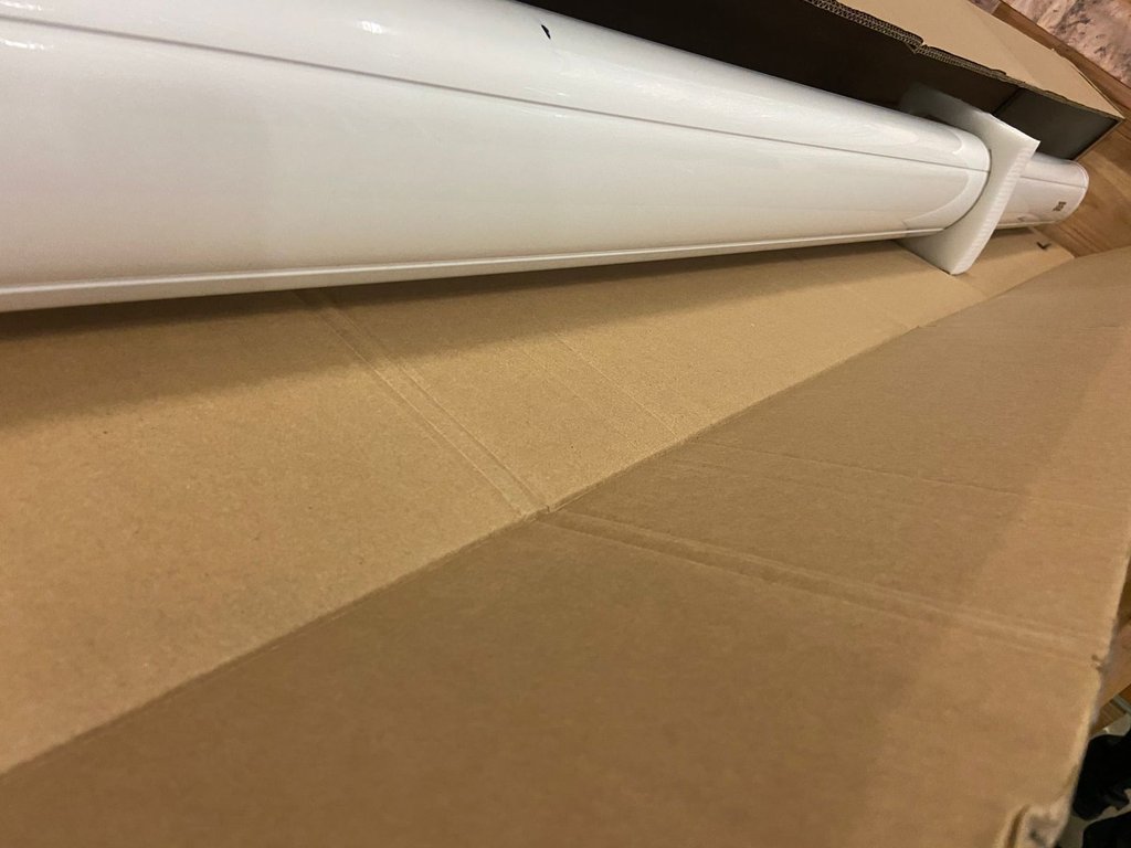 - Обратная сторона экрана имеет черный цвет — для улучшения контрастности и глубины изображения, а также предотвращения паразитного рассеяния света с тыльной стороны (светонепроницаемость полотна — 95%);