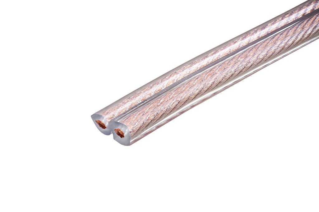 Акустический кабель, бескислородная медь. Сечение проводника 3,96 мм², цвет изолятора прозрачный.