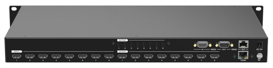 8х8 Digis, 4K 30Гц 4:4:4 (10,2Гб/с), HDMI 1.4, х8 де-эмбеддер, HDCP 1.3, RS232, пульт ДУ, TCP/IP (GUI))