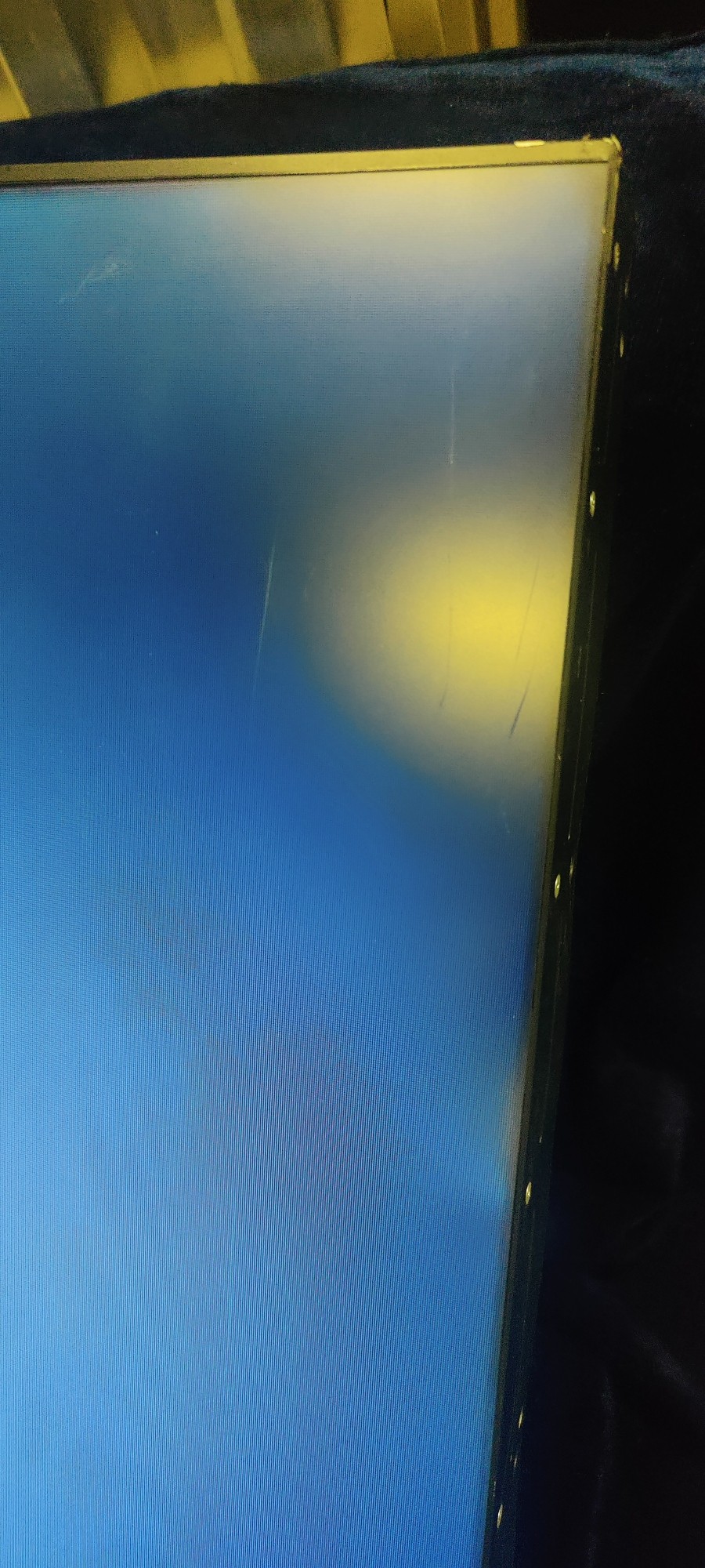 Упаковка вскрывалась, рваная, грязная, вся в скотче. Оборудование использовалось. Со всех сторон на углах видны потертости и сколы. По краям на экране видны небольшие засветы. Царапины на экране.