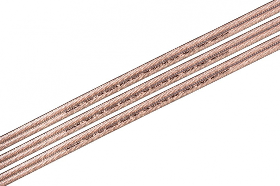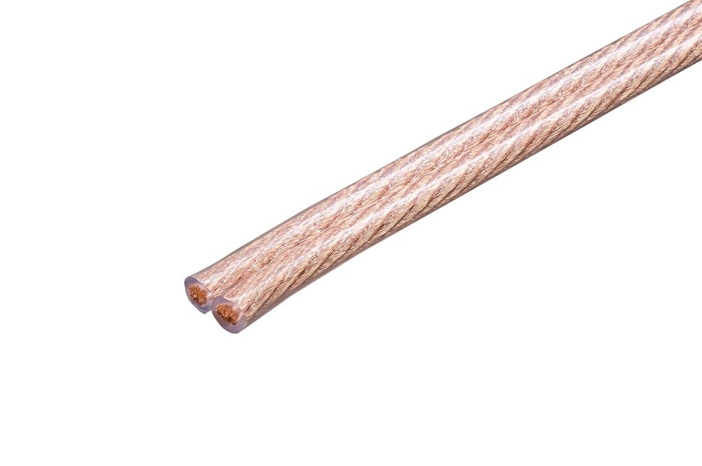 Акустический кабель, бескислородная медь. Сечение проводника 2,53 мм², цвет изолятора прозрачный.