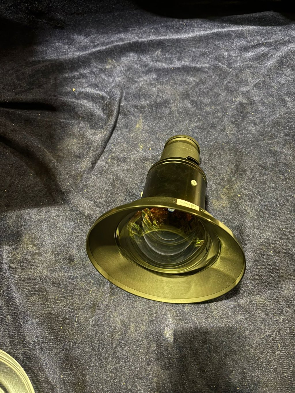 Использовался для демонстрации несколько раз, небольшие потертости на байонете ( месте крепления объектива к проектору), поврежденная упаковка.