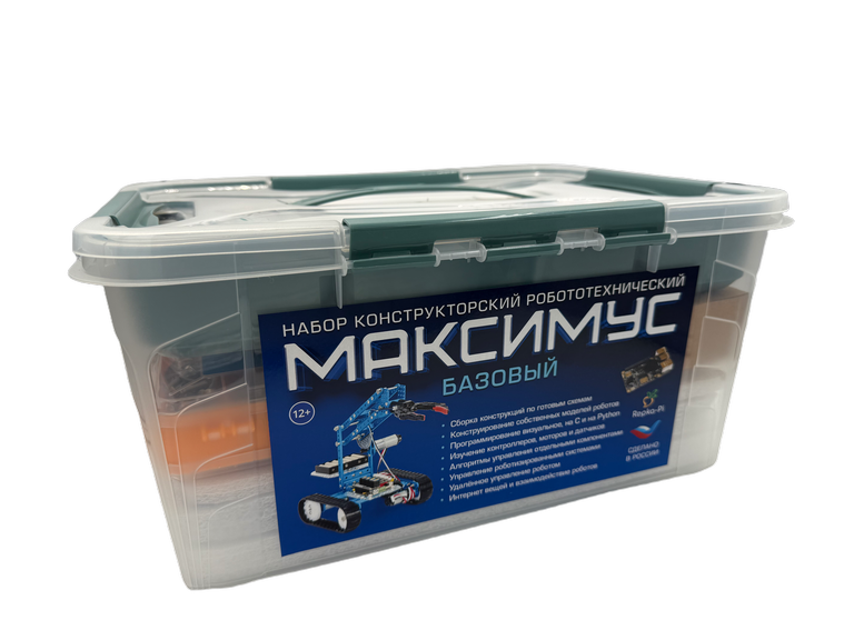 Набор конструкторский (робототехнический) «Максимус» позволяет детям в средней школе изучать основы робототехники, механики и программирования. Рекомендован для детей старше 12 лет. Используемая база обеспечивает гибкость и возможность разработки разнообразных проектов. Плата MegaPi на основе микроконтроллера Mega 2560 совместима с Arduino, что расширяет возможности программирования и интеграции различных модулей. Используется как основной контроллер, программируемый в средах mBlock и Arduino IDE. Возможность подключения к российскому одноплатному компьютеру Repka Pi (входит в состав поставки) значительно расширяет возможности для создания более сложных проектов за счет использования программ и библиотек этой платформы и платформы Raspberry Pi. Основной контроллер MegaPi поддерживает подключение до 10 двигателей постоянного тока или 4 шаговых двигателей или 4 двигателей с энкодером и до 8 сервоприводов. Это позволяет создавать сложные мехатронные устройства. Более 550 конструктивных элементов, датчики, силовые модули, элементы питания позволяют строить разнообразные типы роботов.