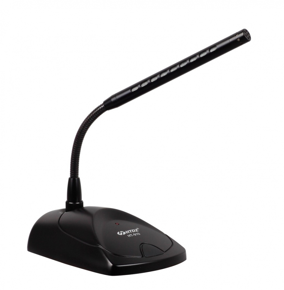 HTDZ HT-910 – конденсаторный XLR-микрофон на «гусиной шее» для проведения пресс-конференций, деловых совещаний, интервью, презентаций и выступлений на трибунах от крупнейшего производителя конференционных и конгресс-систем в Юго-Восточной Азии. Микрофон соответствует всем стандартам, принятым в индустрии, в том числе имеет суперкардиодиную направленность, кнопку MUTE, индикацию, а также оснащается XLR-кабелем 8м и блоком фантомного питания. Благодаря особенностям конструкции HT-910 ориентирован на захват голоса с большего расстояния, а также характеризуется минимизацией фоновых шумов и высоким качеством звука.