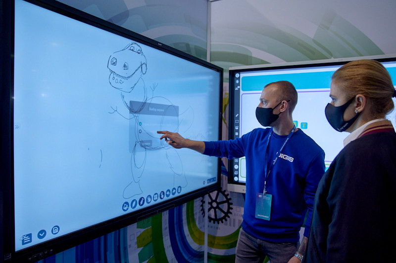 Разговор о конкретных «экспонатах» по сложившейся традиции начнем с интерактивных решений от компании SMART. Фирменные панели пользуются огромной популярностью по всему миру и на всей территории нашей страны – современный функционал, высокая надежность и оптимальное соотношение между ценой и качеством позволяют рекомендовать их как базовое решение для любого учебного заведения от младшего до вузовского уровня. Вот и в этот раз ажиотаж на нашем стенде был не в последнюю очередь вызван показом актуальной коллекции панелей от SMART.