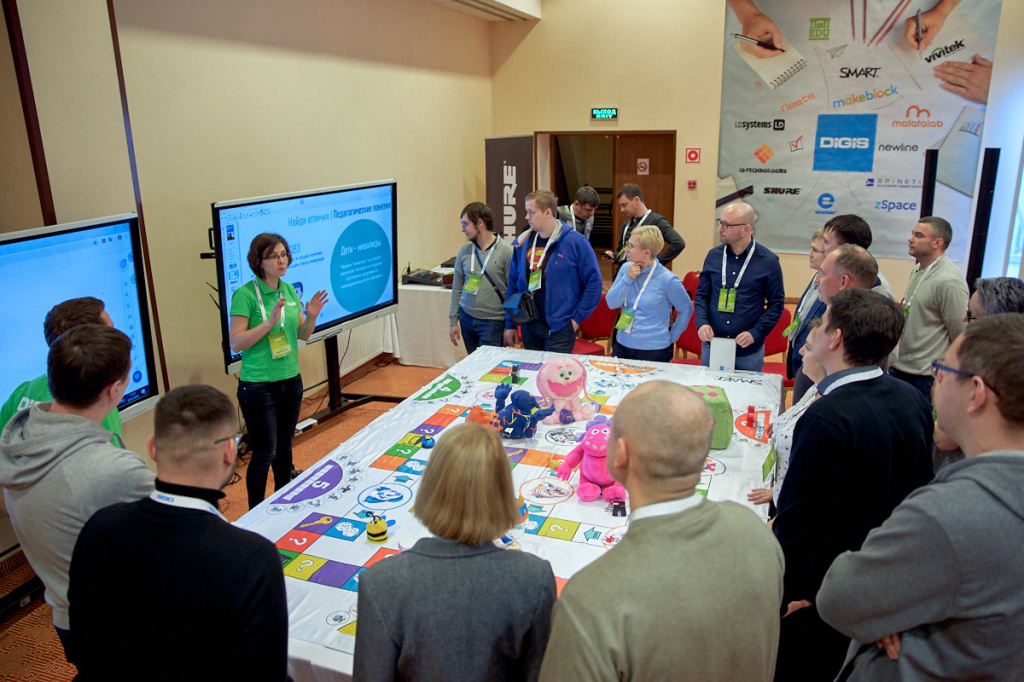 Формат конференции позволяет не только экспериментировать с подачей материала, но и проводить мастер-классы в полностью интерактивном режиме, чем специалисты DIGIS пользуются с большим удовольствием. Почувствовать себя непосредственными участниками действа наши гости смогли в рамках программы «Технологии для развития детей младшего возраста»: здесь мы постарались показать эффективность разных образовательных продуктов через готовую модель, которую можно представить в виде формулы Игра+Обучение=Успех.