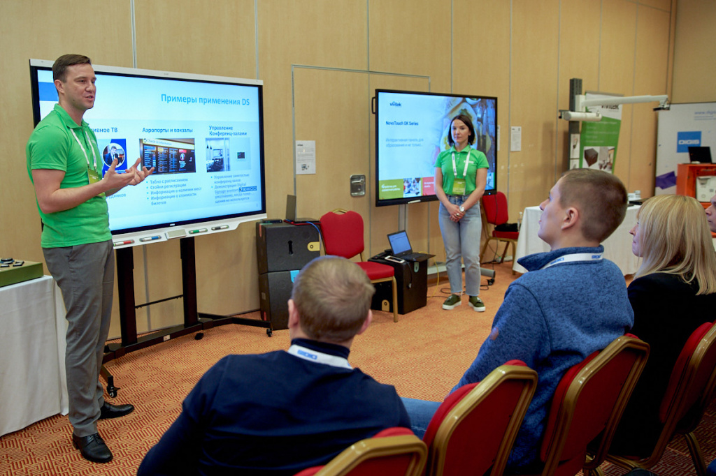 Давно известно, что некоторые задачи лучше решать в команде, а уж при реализации крупных проектов навыки совместной работы и вовсе могут иметь определяющее значение. Преимущества такого подхода становятся особенно очевидны, когда понимаешь, на что способны современные решения из серии Digital Signage! На нашей конференции в качестве учебных пособий были задействованы лучшие из лучших: сетевые устройства и интерактивные инструменты от компаний Vivitek и Spinetix.