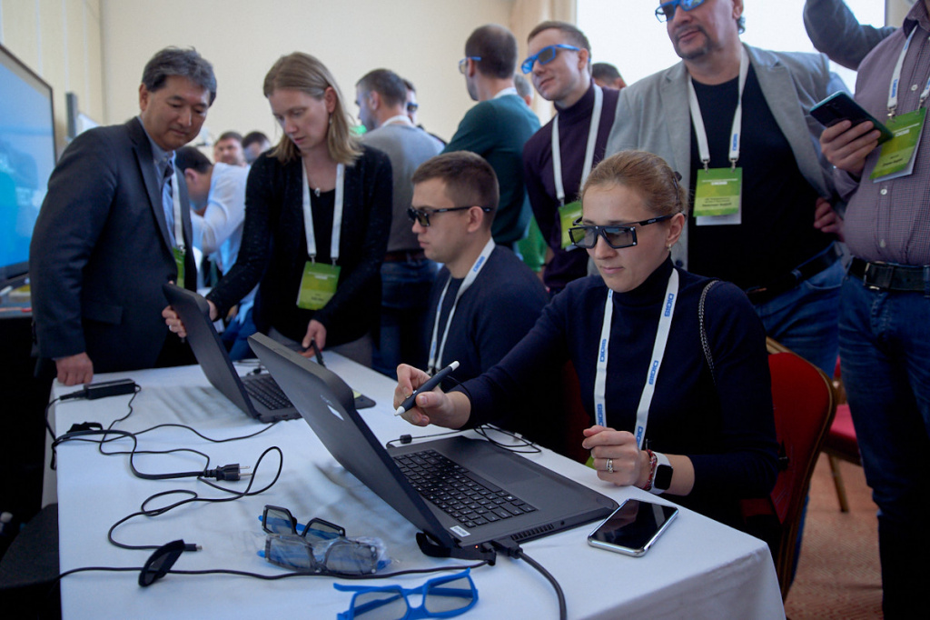 Отдельного упоминания заслуживает мобильная лаборатория расширенной реальности zSpace. Признаемся честно, на нас самих эта новинка произвела очень сильно впечатление, так что не показать ее в рамках конференции мы просто не могли. И хотя такие вещи нужно видеть вживую (словами ее эффект не передать), но обрисовать ее образ в общих чертах мы постараемся. Итак, по сути, zSpace – это компьютерная платформа на базе Windows, построенная на проприетарном программном обеспечении и запатентованной экранной технологии.